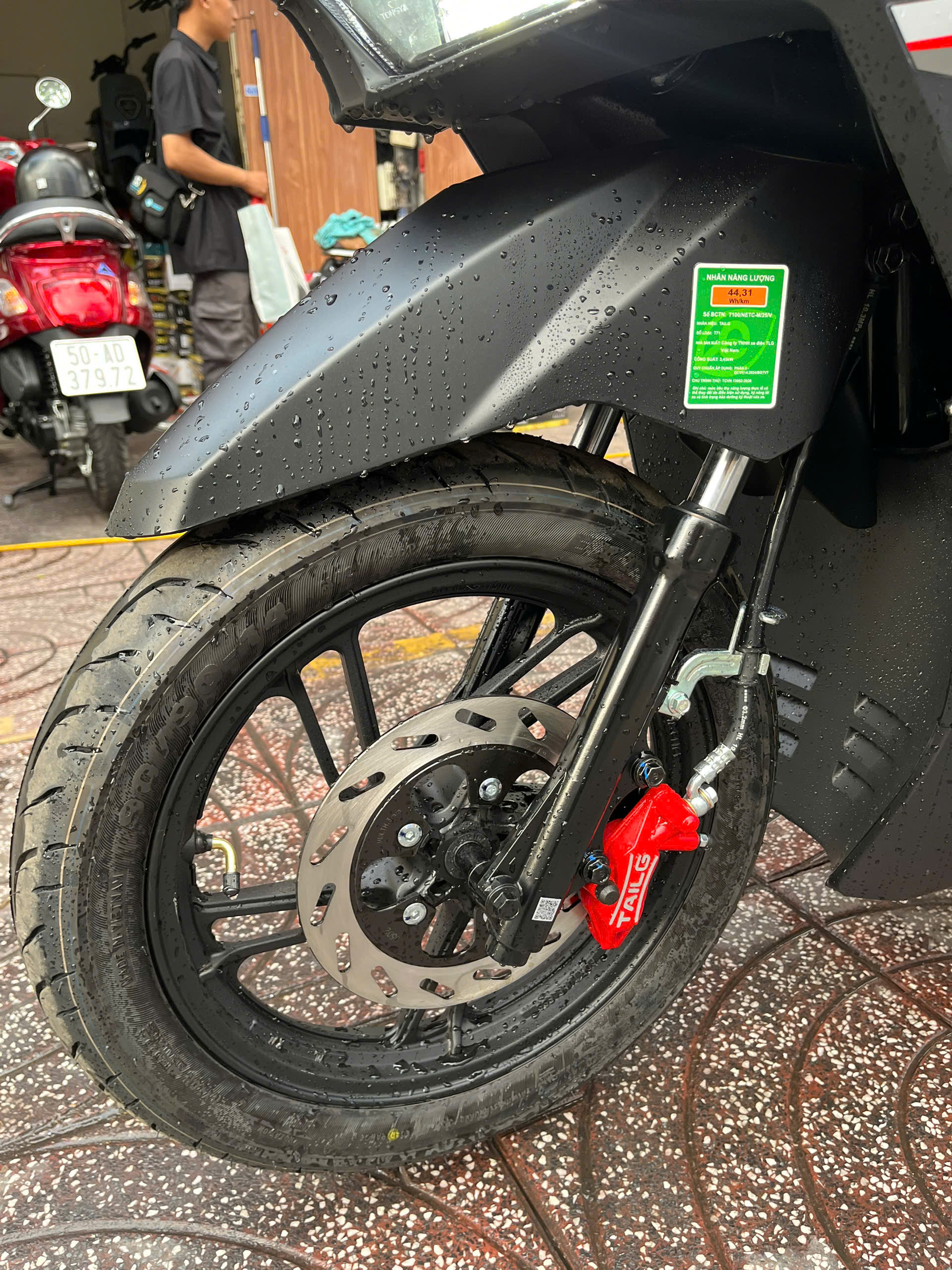 Xe sử dụng bánh xe đường kính 14 inch, lớn hơn nhiều mẫu xe điện phổ thông, giúp tăng độ ổn định khi di chuyển ở tốc độ cao và đặc biệt có lợi khi đi đường dài hoặc đường xấu.