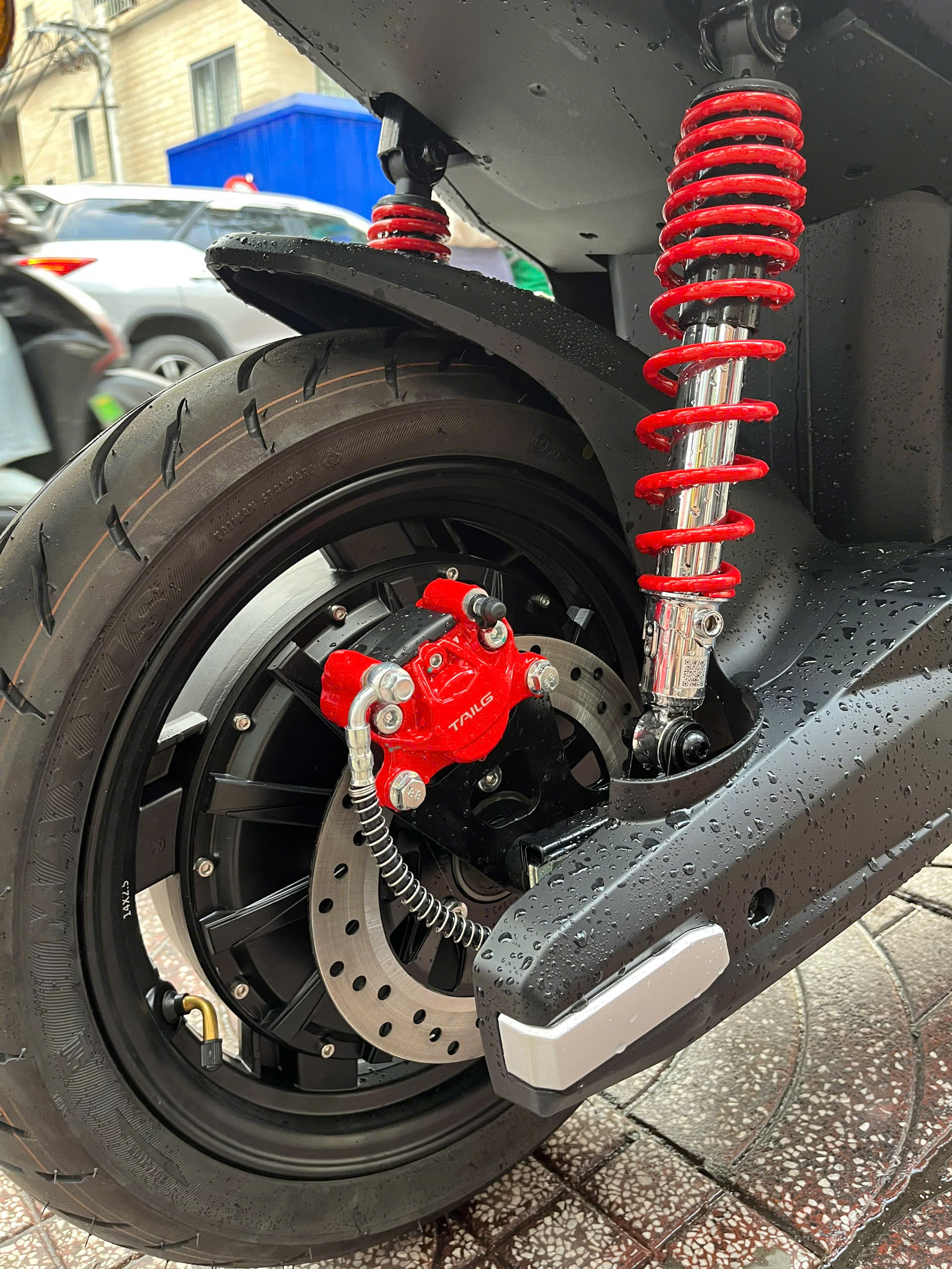 Hệ thống giảm xóc trước sau được tinh chỉnh để mang lại cảm giác êm ái khi đi trên nhiều loại địa hình khác nhau, từ đường đô thị bằng phẳng đến những đoạn đường gồ ghề nhẹ. Điều này không chỉ giúp người lái thoải mái hơn mà còn góp phần giảm thất thoát năng lượng do rung lắc, từ đó tối ưu quãng đường di chuyển.